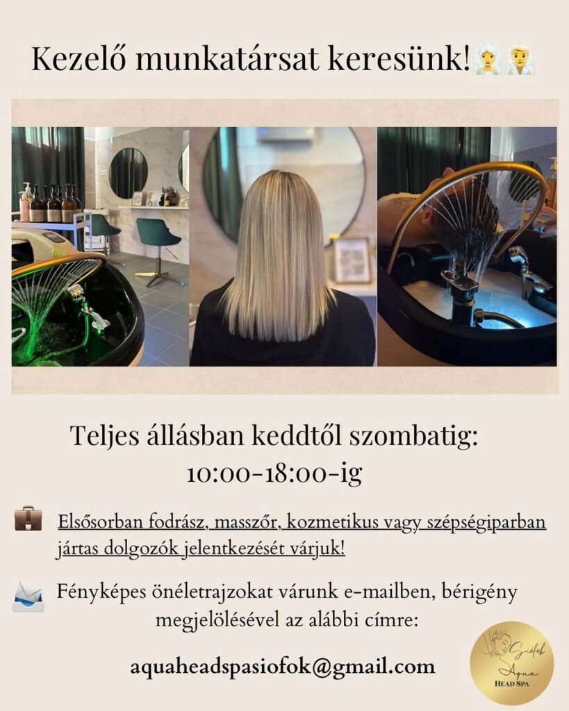 Siófoki szalonunk új kezelő munkatársat keres Head Spa kezelések végzésére! 💆‍♀️💦